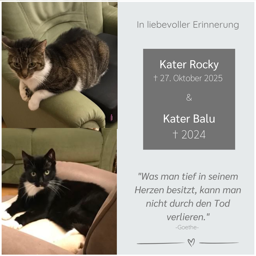 Unsere Herzen sind schwer, die Welt scheint ein wenig dunkler, da diese lieben Amelie-Katzen, nicht mehr bei uns sind. 🐾 🖤