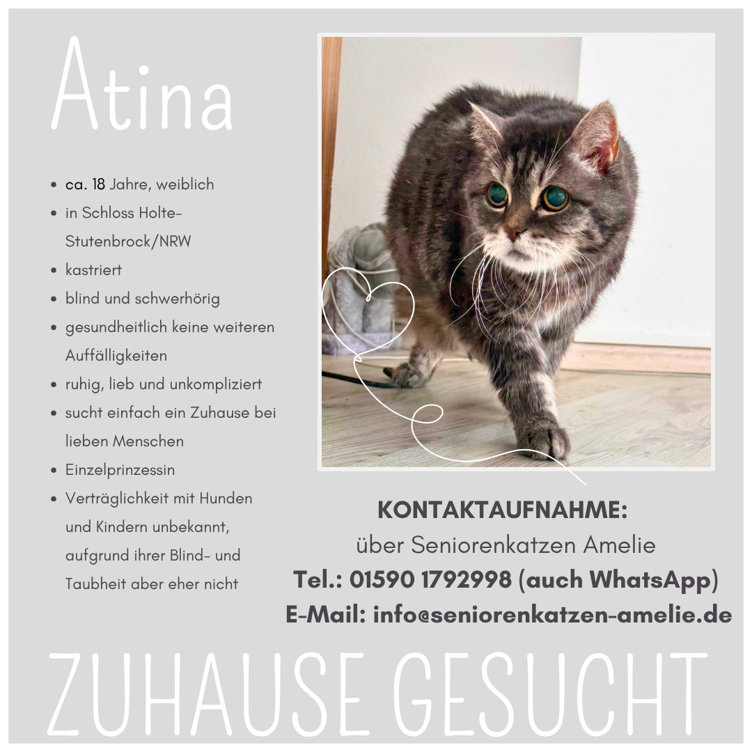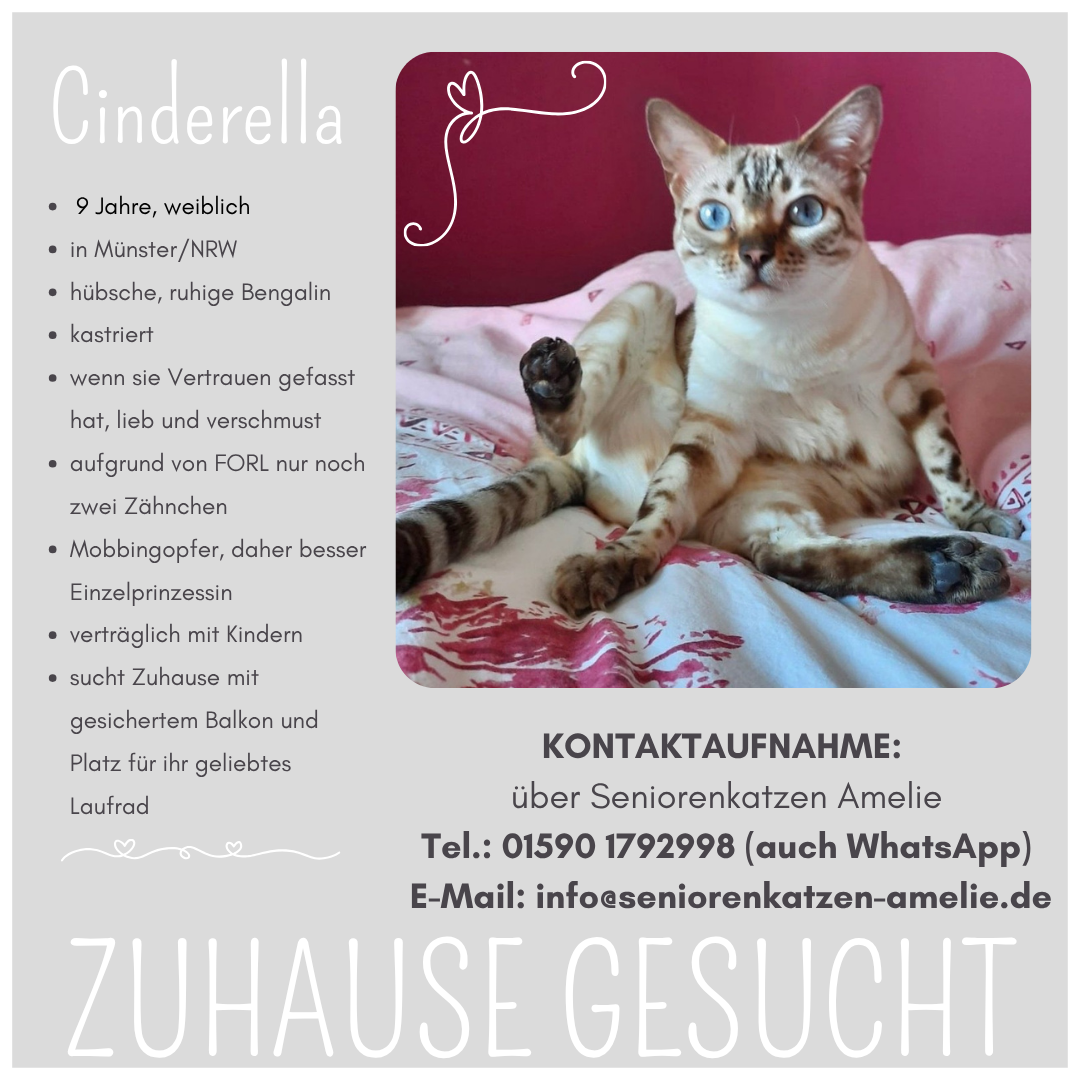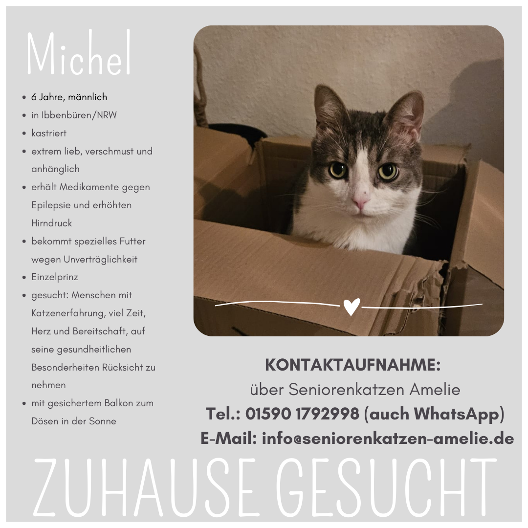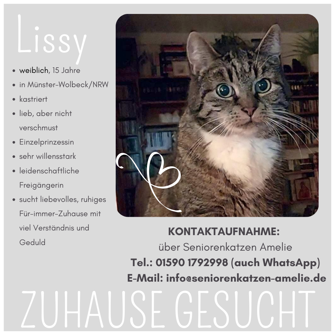 Für ausführliche Informationen zu unseren liebenswerten Seniorenkatzen und -katern bitte jeweils auf das Bild klicken oder besuchen Sie unsere Accounts für den gesamten Überblick: